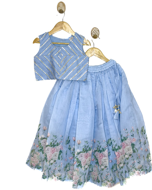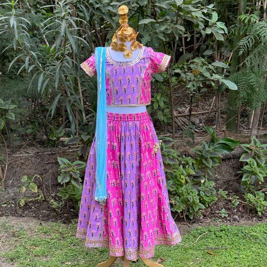 Multicolor Waterpaint Georgette Jacquard Lehenga