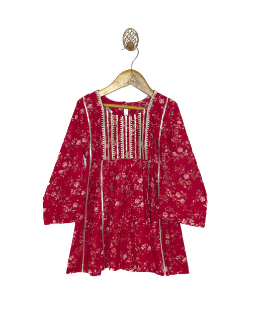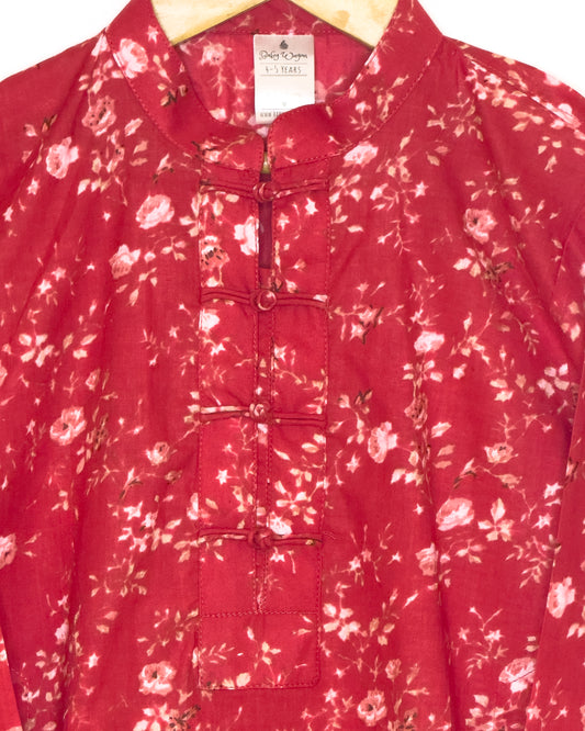 Red White Floral Kurta Set