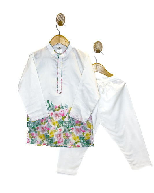 White Floral Chanderi Kurta
