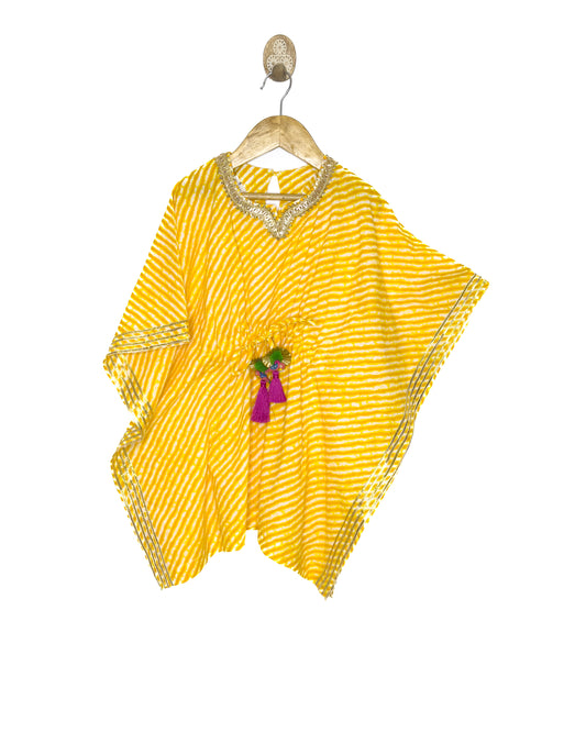 Yellow Lehariya Kaftan Gharara Set