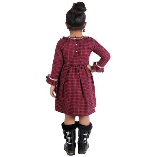 Maroon Check Frock with Victorian Frill
