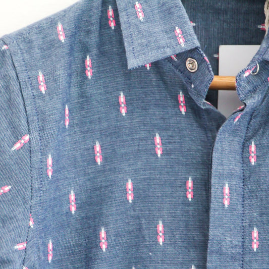 Blue Shirt with Pink Motifs