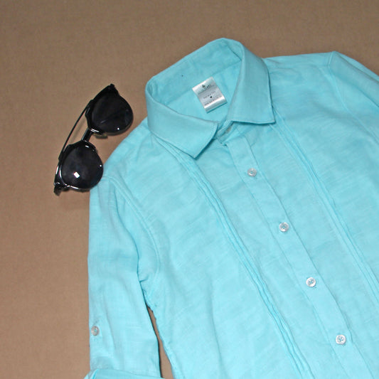 Aqua Blue Pintex Cotton Shirt