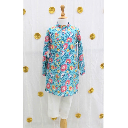 Sky Blue Floral Kurta Set