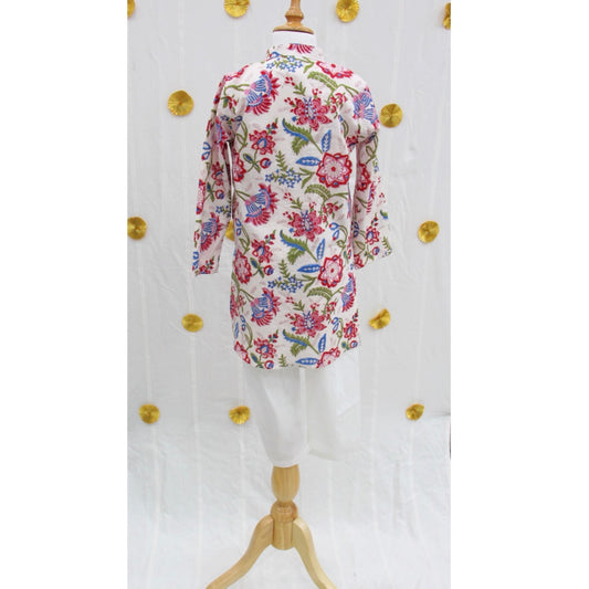 White Floral Block Print Kurta