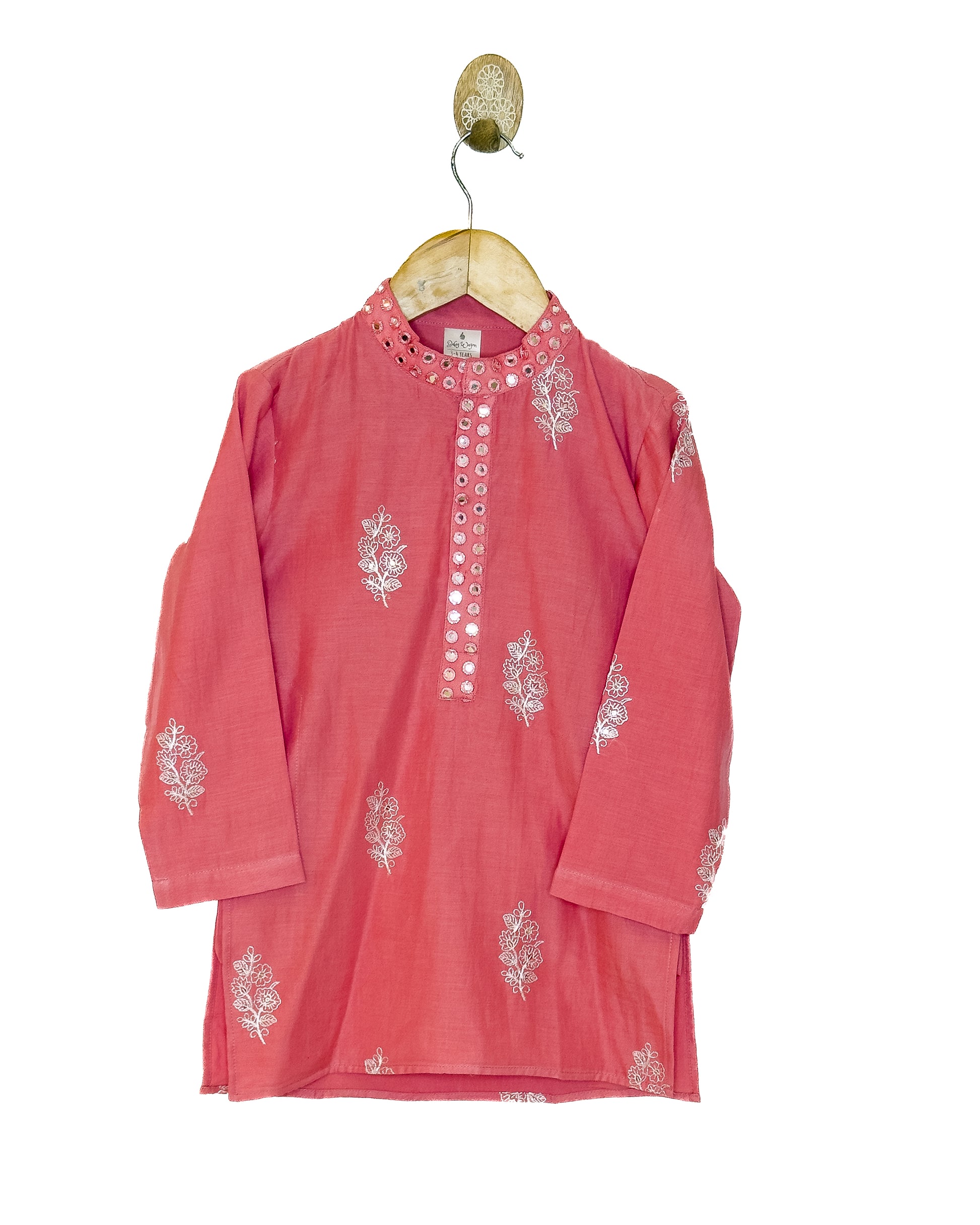 Mul Chanderi Peach Mirror Embroidered Kurta Set