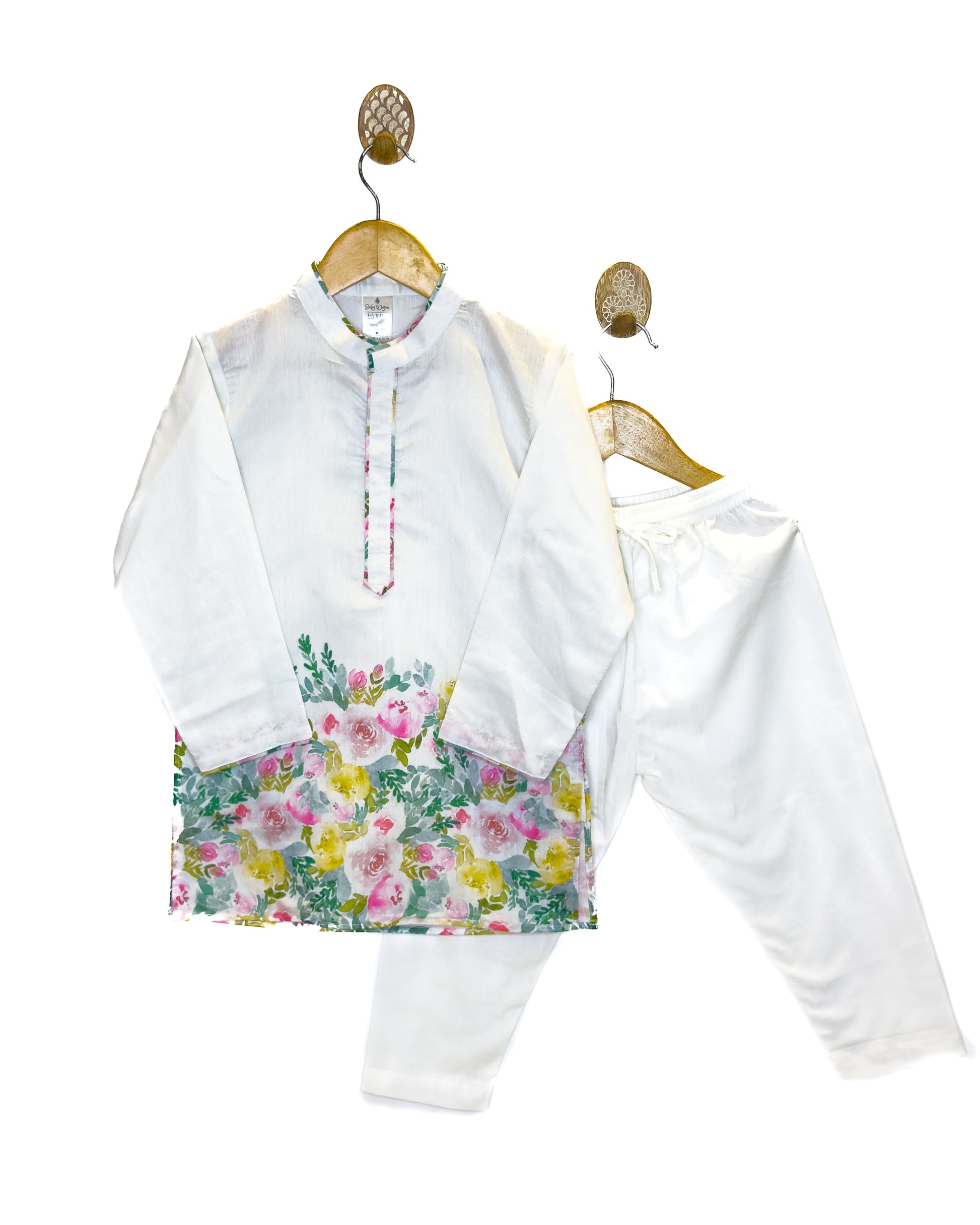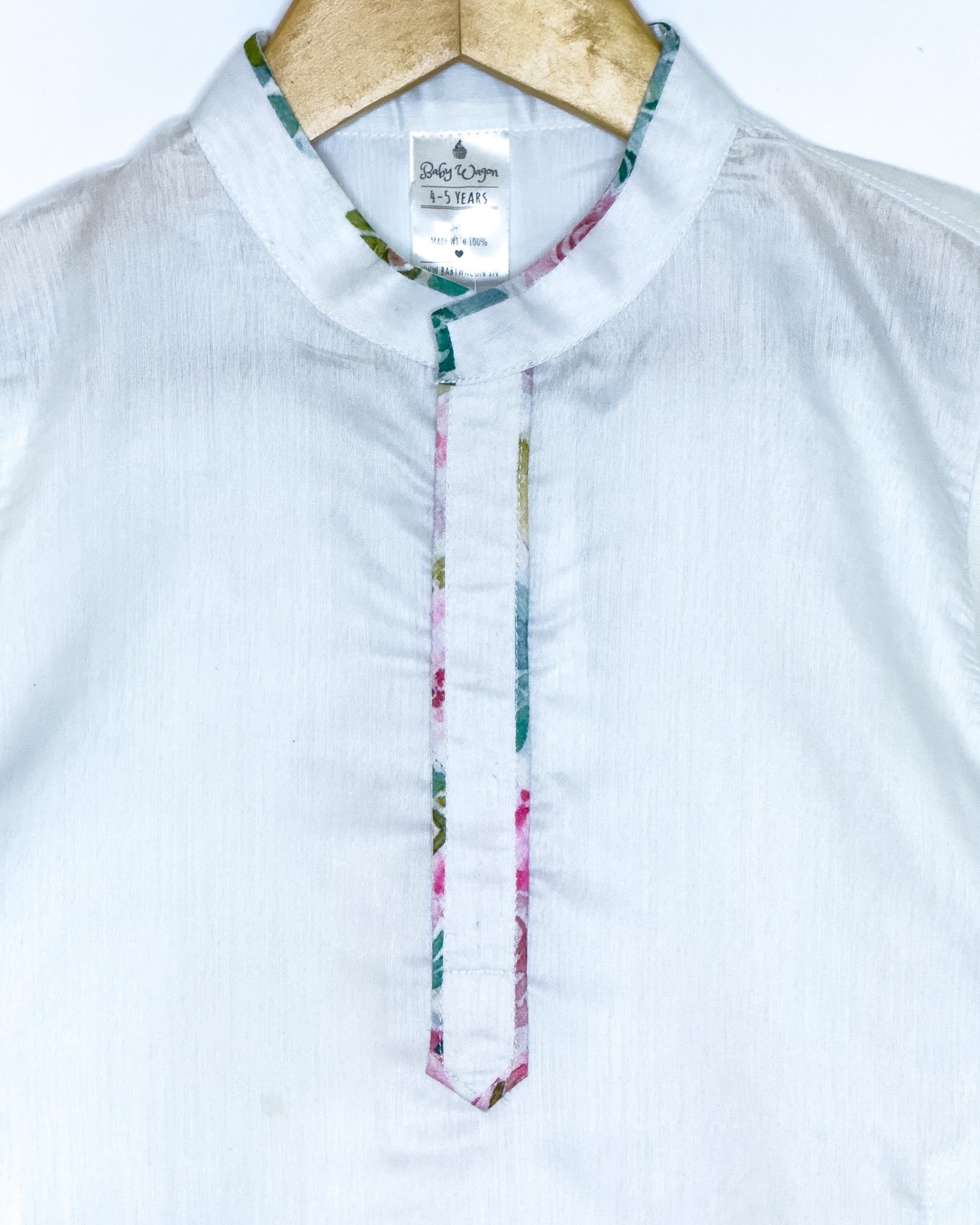 Dress your little one in timeless elegance with our chanderi kurta lined with pure chambric cotton and white pyjama set, designed especially for the upcoming festive season. Made from 100% high-quality cotton, this outfit is ultra-soft, breathable, and gentle on your child’s delicate skin—perfect for long celebrations and joyful moments.